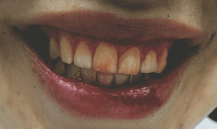 her hands were bloody red.